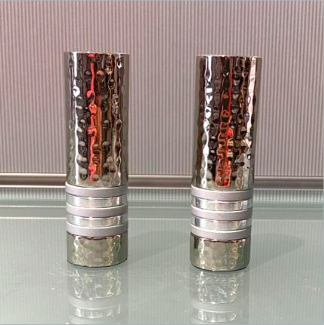 Emanuel Short Shabbat Candlesticks - Silver Stripes