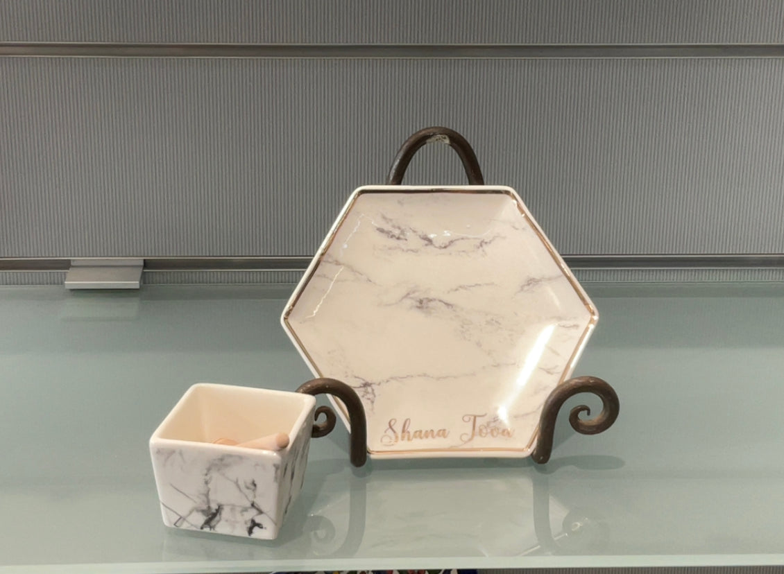 Add a nice touch to your Yom tov table with this porcelain honey and apple dish set